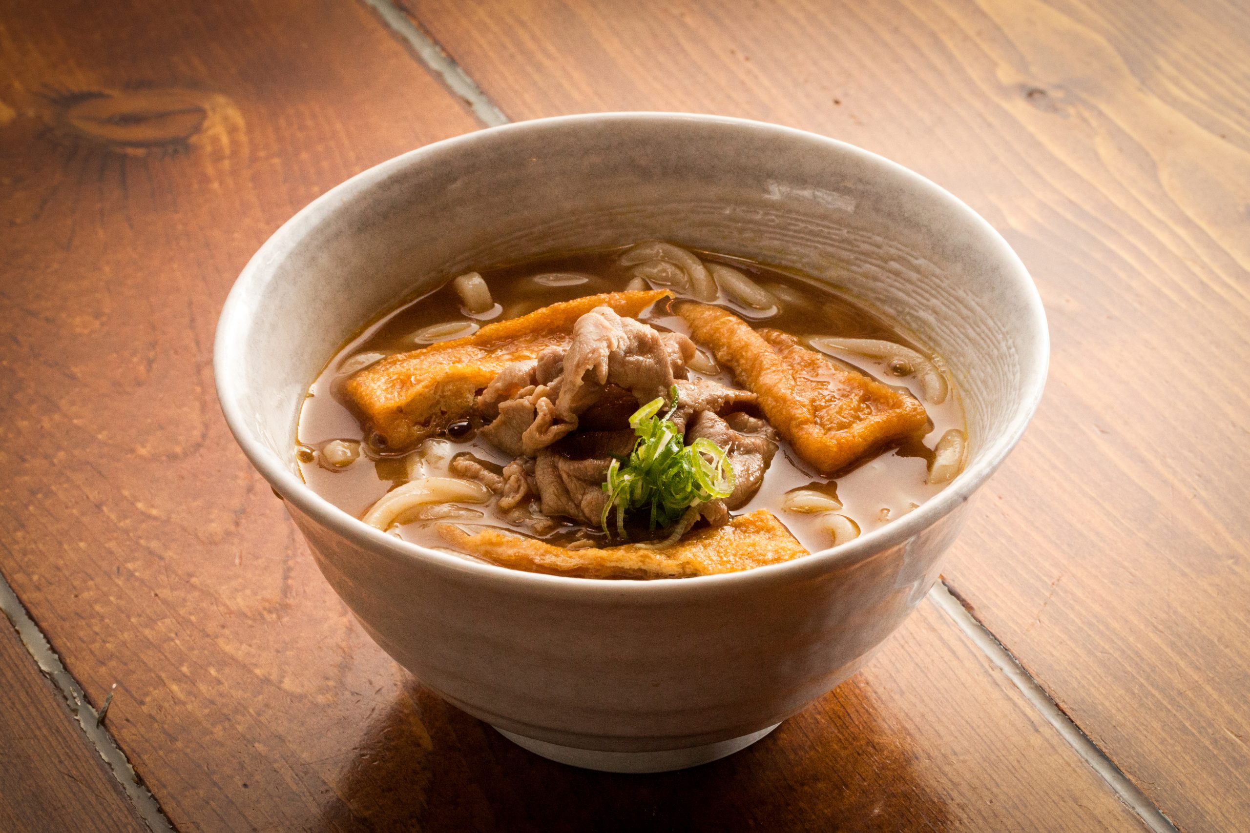 Pork, deep fried tofu and green onion with dashi curry base soup